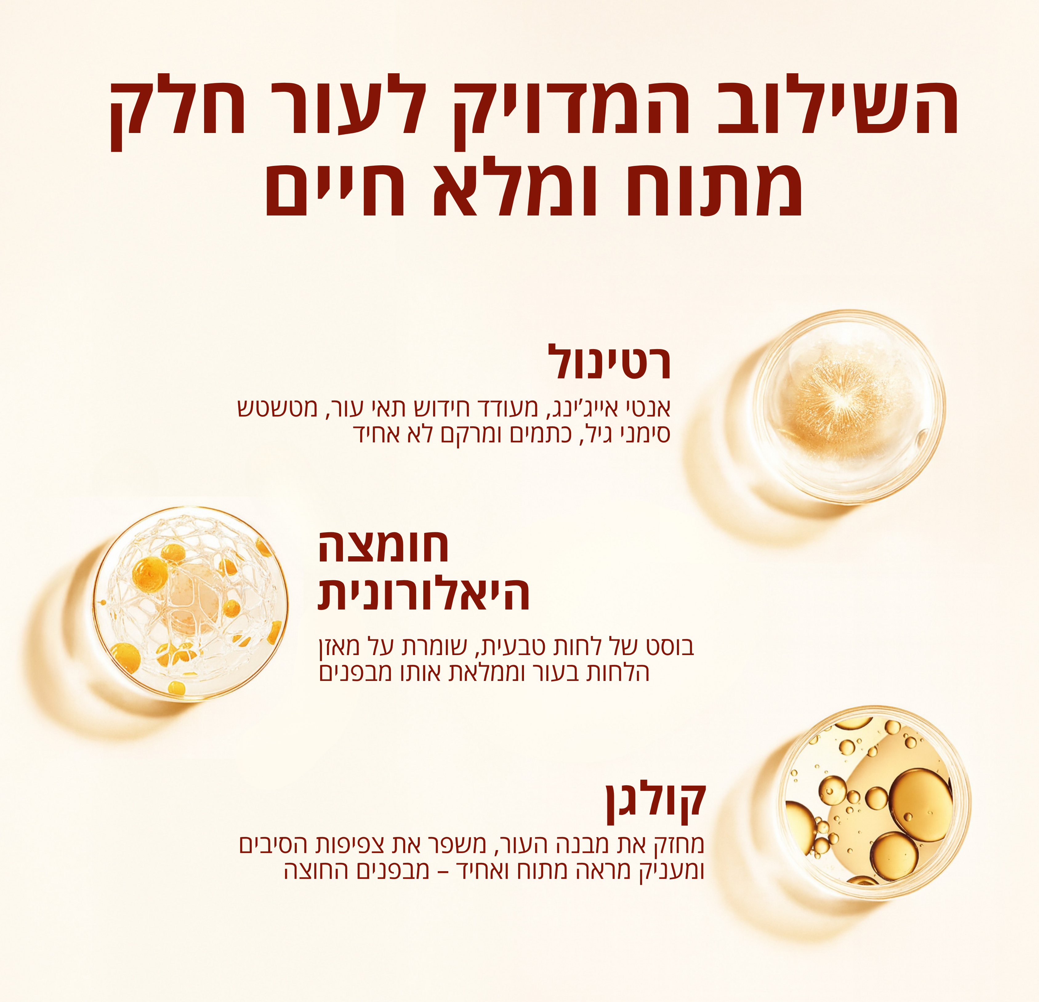 ✓ תוצאה נראית לעין תוך כמה שבועות – עור חלק וזוהר יותר